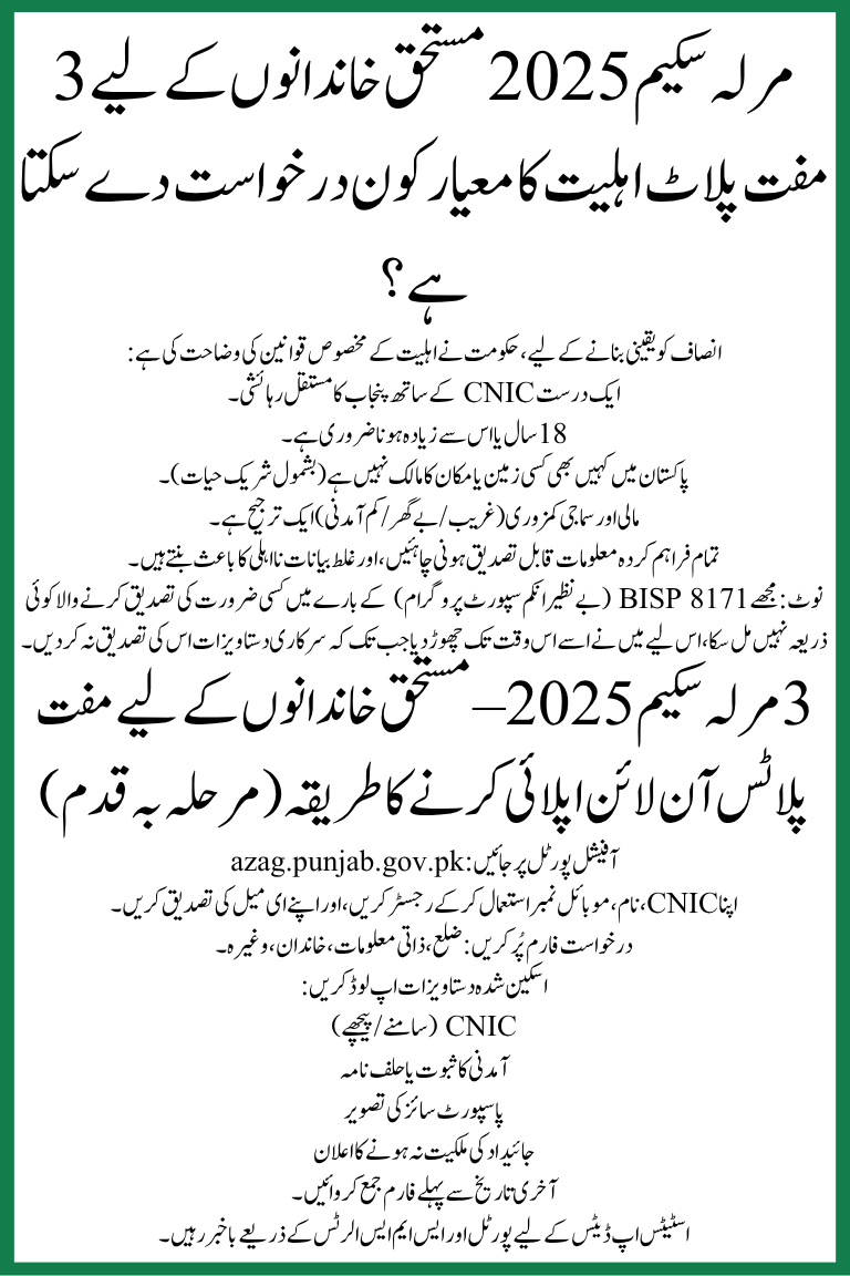 3 Marla Scheme 2025 Free Plots for Deserving Families Eligibility Criteria Who Can Apply?