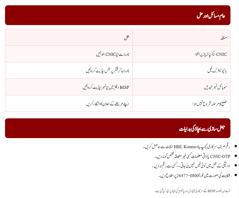 - If anyone tries to scam you, report immediately to the BISP Helpline (0800-26477).