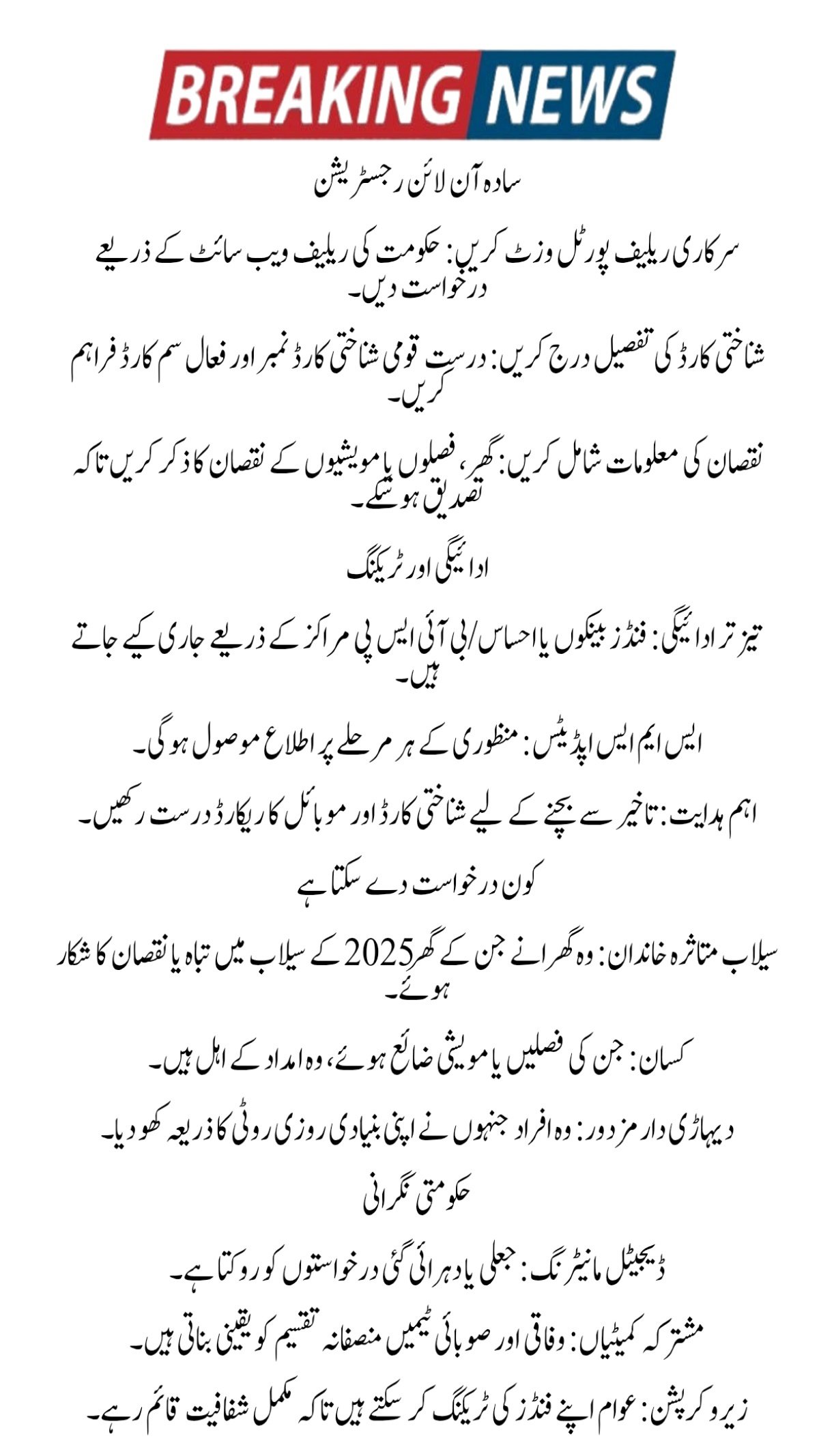 Breaking News: Rs. 5.8 Billion Flood Relief Package 2025 – Online Registration Guide