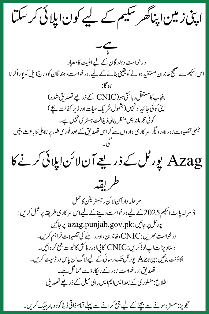 Who Can Apply for Apni Zameen Apna Ghar Scheme