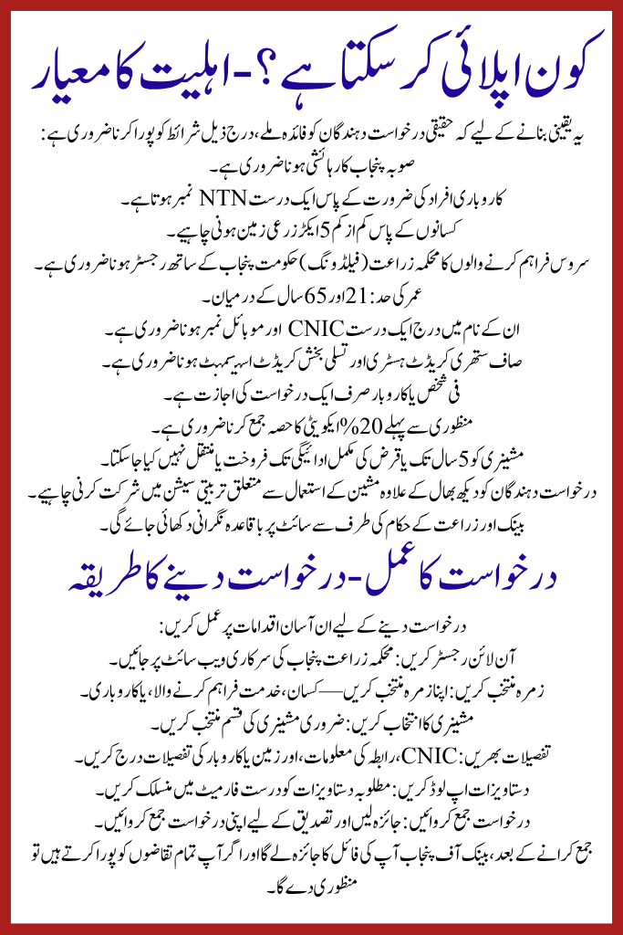 | Name of Program | CM Punjab High-Tech Farm Mechanization Finance Program |