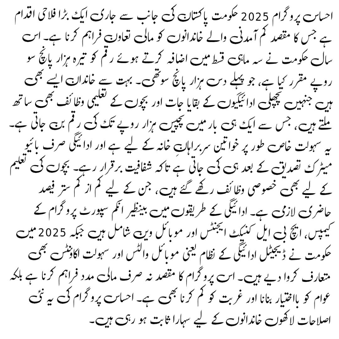 The Ehsaas Program 2025 ensures quarterly support of Rs 13,500, with additional stipends for children and arrears that can raise the payout close to Rs 25,000. To secure your benefits, always update your household survey, confirm status on 8171, and collect payments only from authorized BISP channels. Digital payment solutions like mobile wallets are being introduced to make the process even easier.