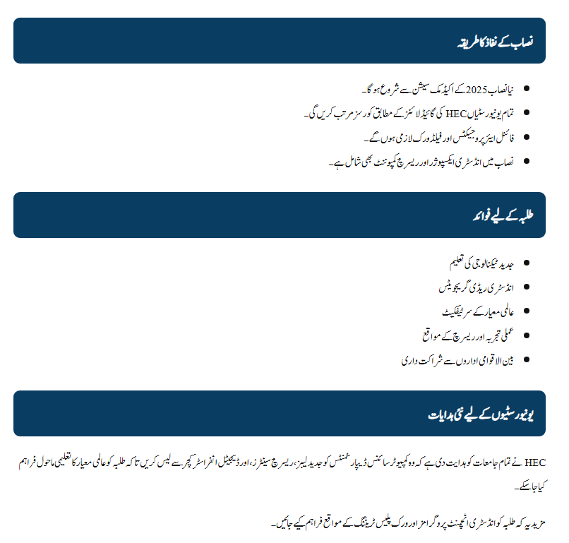 It’s a modern syllabus introduced by HEC Pakistan to align university education with global technology standards, including subjects like AI, Data Science, and Cybersecurity.