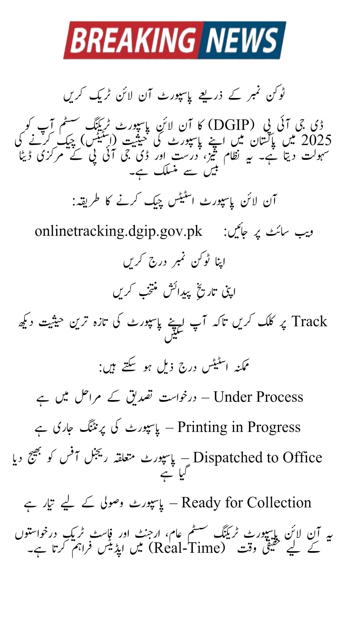 | Tracking Website | onlinetracking.dgip.gov.pk |