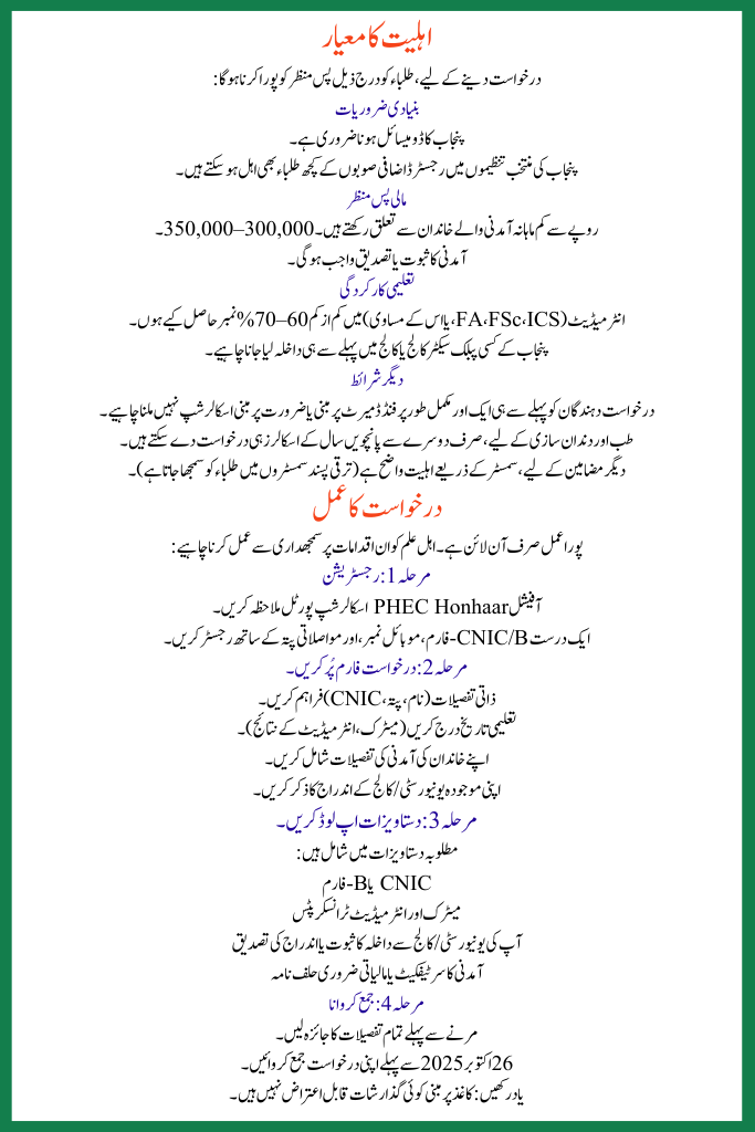 | Program Name | Punjab Honhaar Merit-Based Scholarship Program |